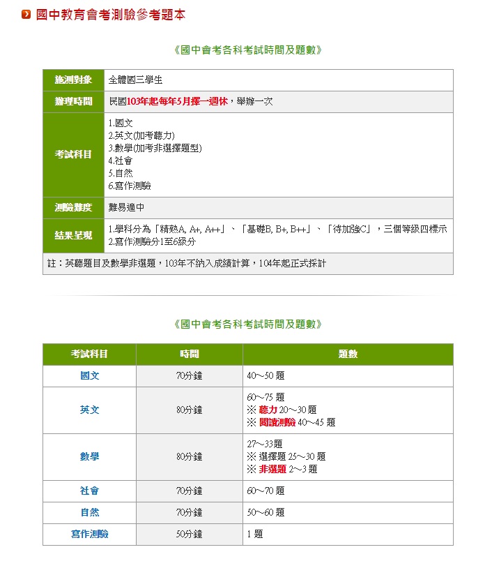 數學科 自然科 英文科 社會科 國文科 寫作測驗 參考答案