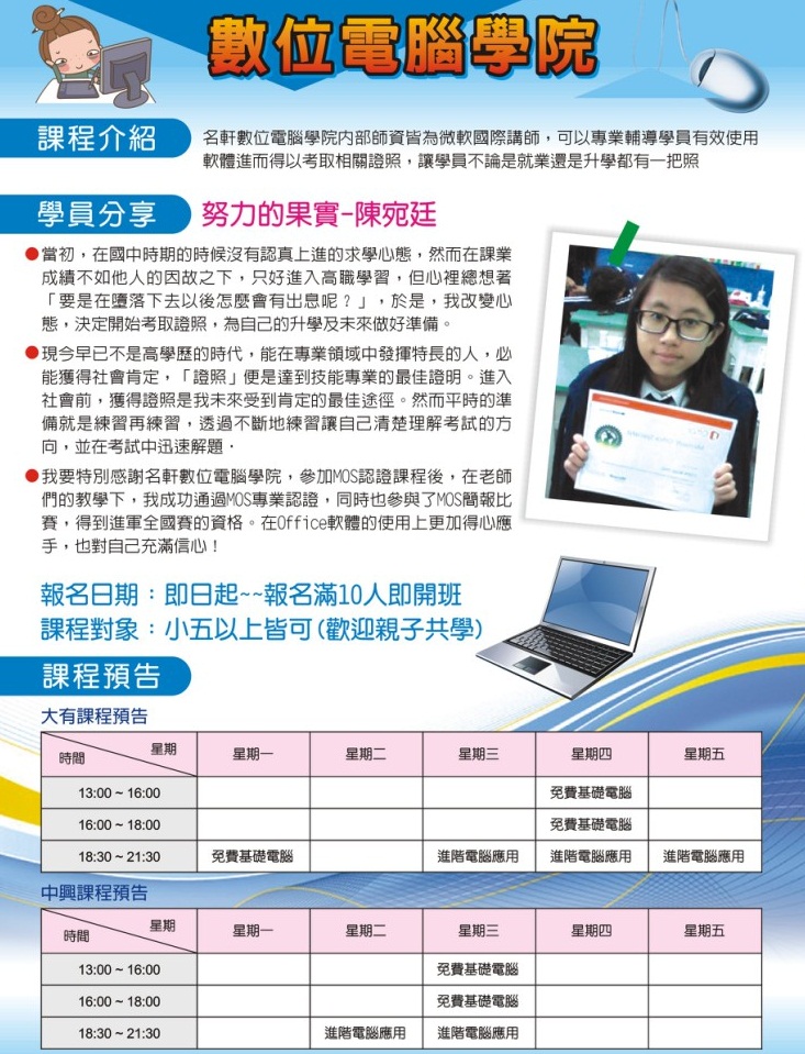 免費電腦課程 報名網址:http://www.mixu.com.tw/class3.php?id=61